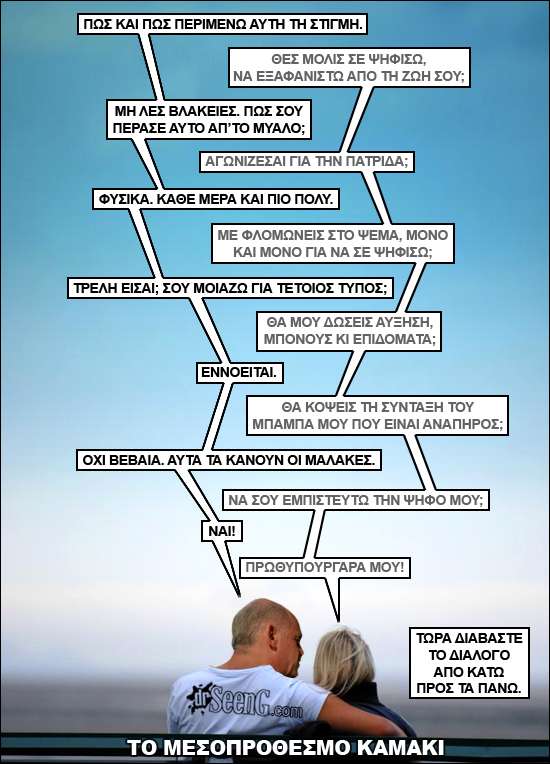 Αυτή η εκδοχή φαίνεται όμως ότι δεν ανταποκρίνεται στα σημερινά ελληνικά πράγματα διότι το ΣΥΝΟΛΟ των ελληνικών κομμάτων και καθεστωτικών επιτελείων είναι αντίθετο με την αυτοκτονική πρωτοβουλία του Δημοψηφίσματος.