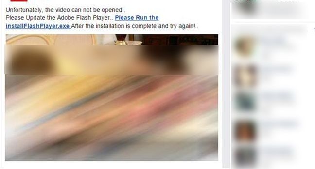 Συγκεκριμένα, η επίμαχη ανάρτηση εμφανίζεται να έχει κοινοποιηθεί από κάποιον φίλο του χρήστη στο «Facebook» και να έχουν επισημανθεί σε αυτήν με ετικέτα (tag) μέχρι και είκοσι (20) φίλοι του. Εάν ο χρήστης πατήσει στο εμφανιζόμενο ως πορνογραφικό βίντεο, μεταφέρεται σε μια απατηλή ιστοσελίδα στην οποία παίζουν τα πρώτα δευτερόλεπτα του βίντεο και στη συνέχεια, σταματάει η αναπαραγωγή του και εμφανίζεται μήνυμα, το οποίο ενημερώνει τον χρήστη ότι απαιτείται να « κατεβάσει» μια αναβάθμιση του λογισμικού Adobe Flash Player ( InstallFlashPlayer.exe ), όπως φαίνεται στην ακόλουθη εικόνα:trojan