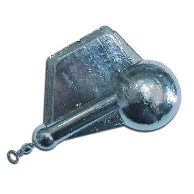 Μολύβι, το μολύβι φύλακα δουλεύεται σε διάφορα βάρη ανάλογα με το βάθος, τα ρέματα, την ταχύτητα που πάμε. Εγώ στο ζωντανό βάζω 300gr στα 40 – 60 μέτρα και 400γρ σε πάνω από 60 μέτρα βάθος. Άρα πρέπει να έχεις ποικιλία γιατί πέρα από τα διάφορα βάθη που θα ψαρεύεις θα σου κόβονται πολλά στα βράχια. Μαζί σου οπωσήποτε 5-6 μολύβια τουλάχιστον στην αρχή ή αν ξέρεις ότι θα περάσεις από δύσκολα κομμάτια πολλά σηκώματα ή μέρος που έχουν πέσει πολλά παραγάδια. Δες στην φώτο για να καταλάβεις το σχήμα του.