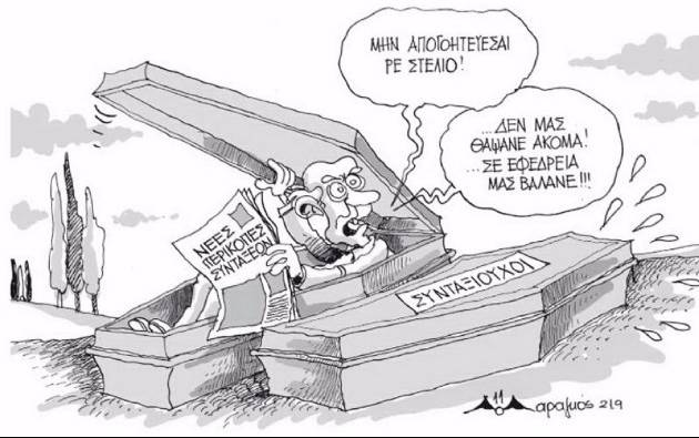 Το να εισαι ομως υποχρεωμενος να ξεχρεωνεις αυτα που δημιουργησαν αλλοι και μαλιστα εσυ που δεν εχεις τιποτα να κρυψεις απο την εφορια γιατι εισαι μισθωτος και συνταξιουχος κι ως εκ τουτου εισαι το ευκολο θυμα, ειναι μια τελειως ξεχωριστη υποθεση. Αν μου βρειτε μεσα σε ολους αυτους (που πετανε τα πανερια εννοω, οχι εκεινους που πηγανε να πιουνε ενα ποτο ορθιοι στο μπαρ) εστω κι εναν μισθωτο η συνταξιουχο, εγω θα ζητησω δημοσιως συγγνωμη και θα παραδεχτω οτι κοιμαμαι τον υπνο του δικαιου. Δε νομιζω να ειναι ομως ετσι...